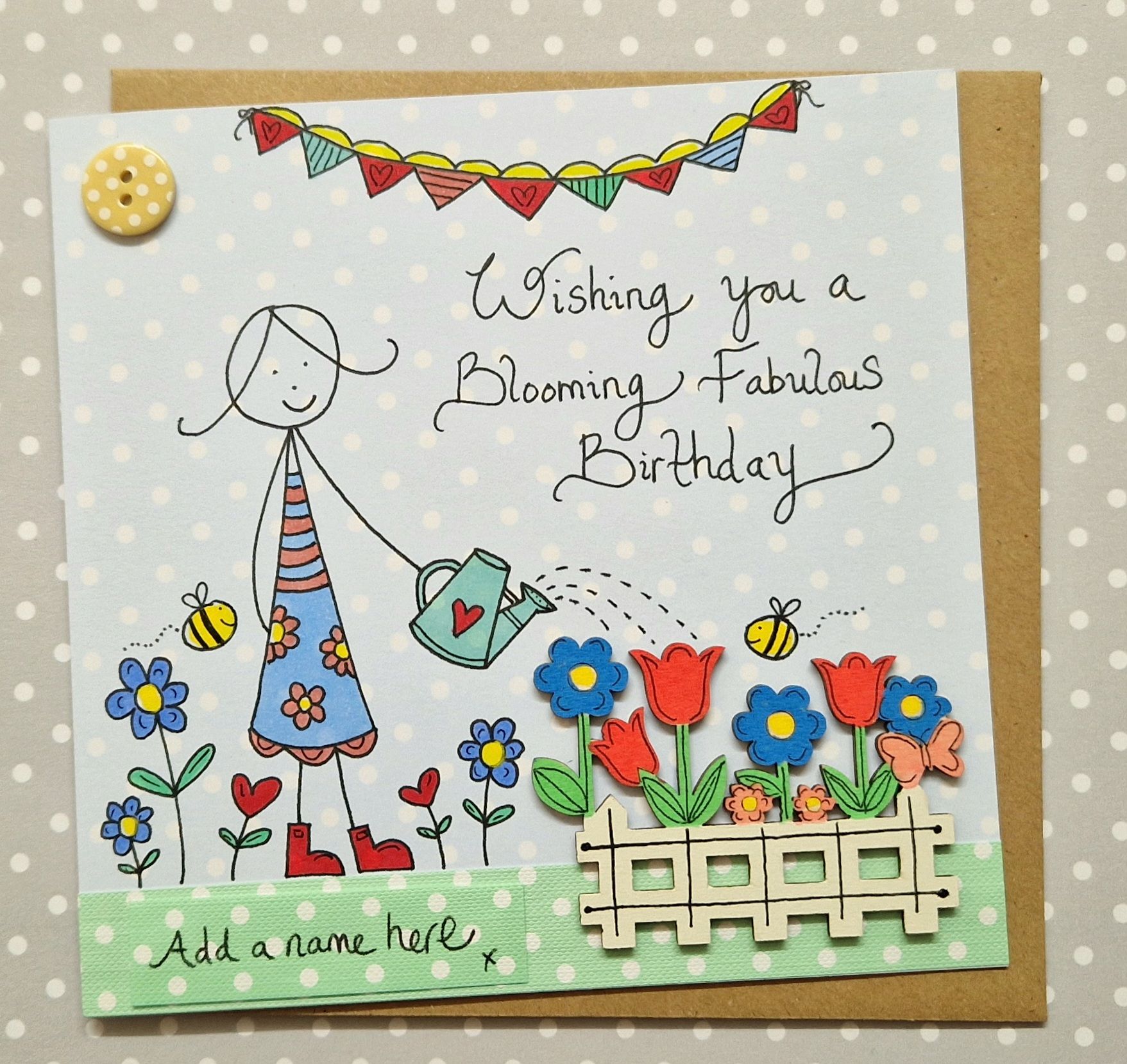 Welcome to Andrea Willis. I design and create my cards and gifts from my sunny shop and studio based in Scarborough on the Yorkshire Coast. I have had my shop for 15 years and have a large range of cards and gifts for all occasions. As I live on the coast I of course have a seaside range but I also love fairies, toadstools, bees, flowers and love my garden, all these elements are inspiration for my work. I also love buttons and sparkle which I always add to my creations when hand finishing. Another important aspect of my work is the personalisation. All designs are made to be personalised, creating a keepsake card or gift to treasure. To purchase, simply click on the store heading and browse the categories. Each item has a personalisation box where you can add your names. Cards and gifts to treasure.
